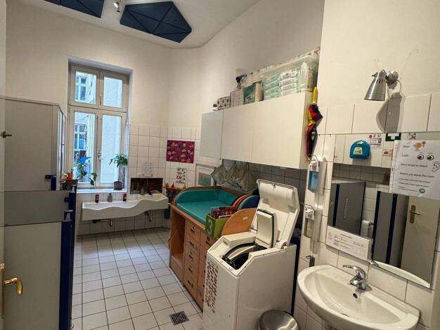 Der einladende Eingangsbereich mit Schaufensterfront ist über einen breiten Zugang von der Naumannstraße aus erreichbar. Zusätzlich verfügt die Immobilie über 2 Bäder und Küche sowie 5 Arbeitsräume, ...